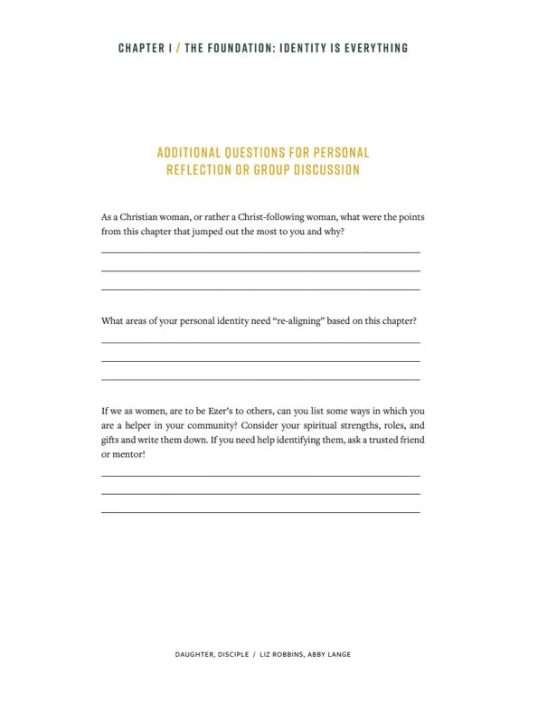 Click the image below for a printable PDF of the questions/exercises from each chapter of Daughter, Disciple. Print as many copies as you want!